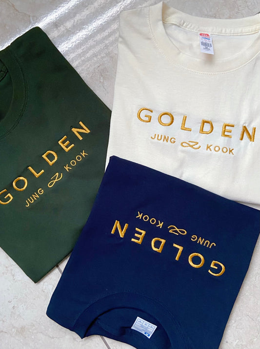 GOLDEN JUNGKOOK green, navy, beige EMBROIDERED tshirt tee short sleeve