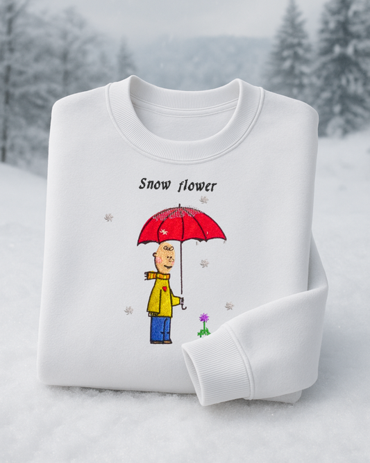 SNOW FLOWER TAEHYUNG V BTS CHRISTMAS SWEATER EMBROIDERED WHITE SWEATSHIRT